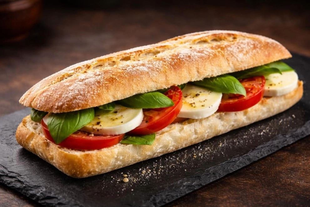 Mozzarellás, paradicsomos ciabatta friss bazsalikommal