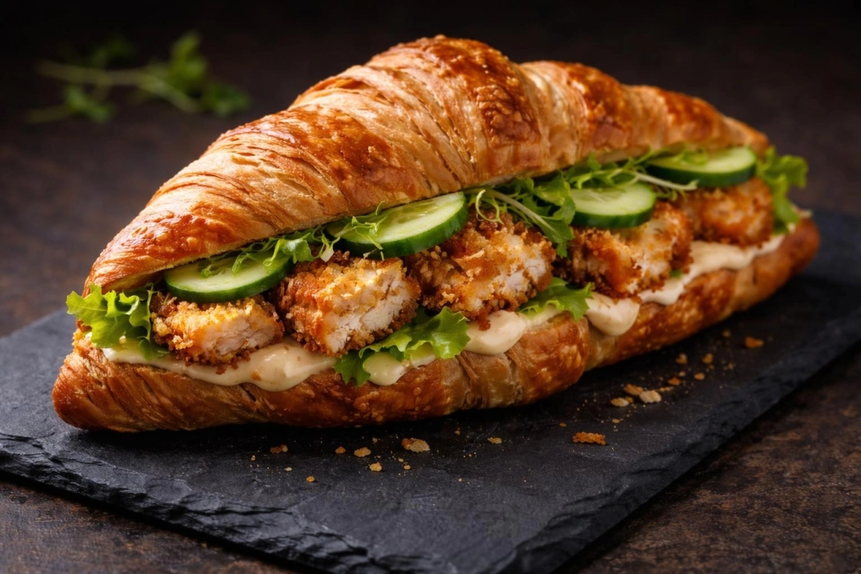 Pankómorzsás csirkés croissant chilis majonézzel